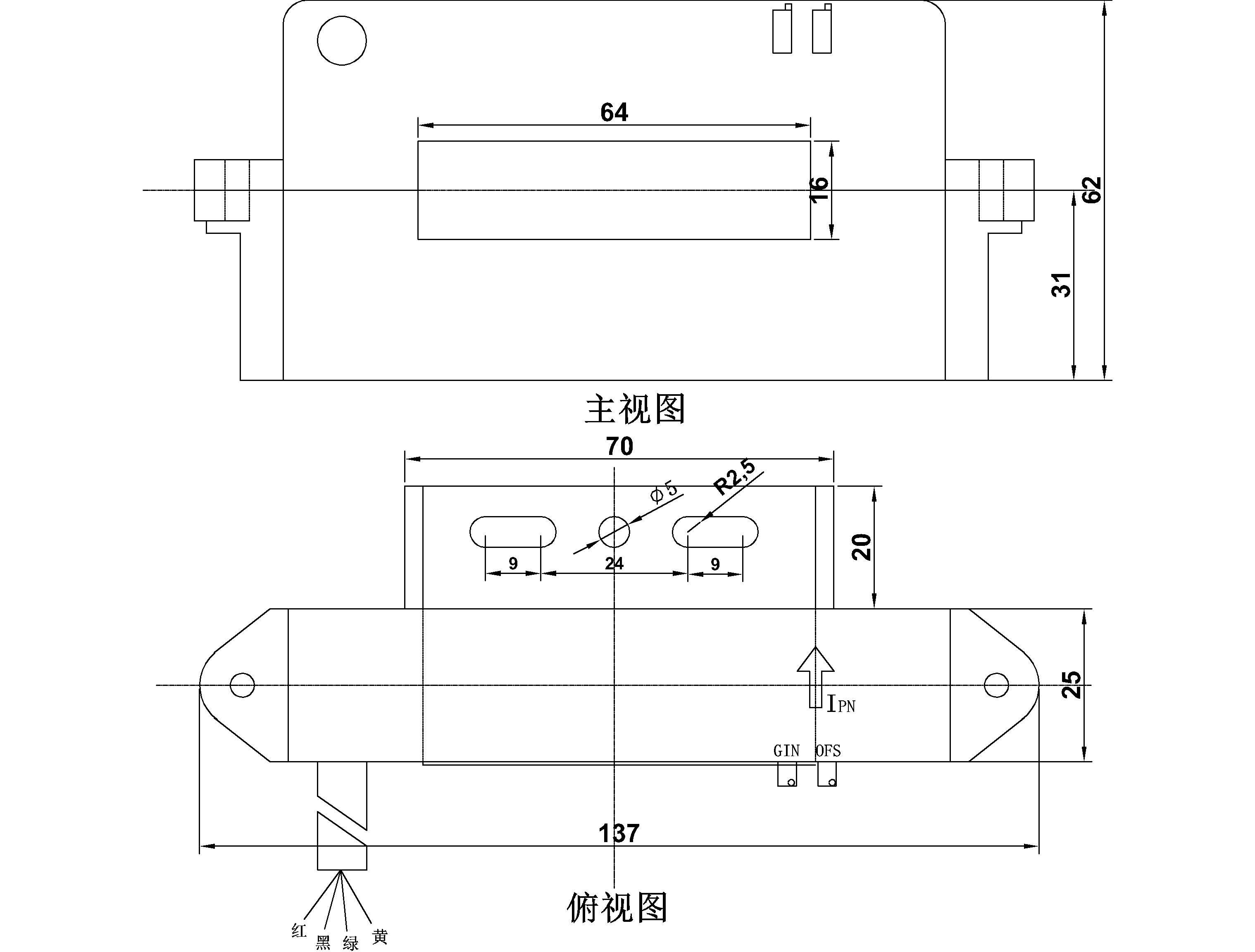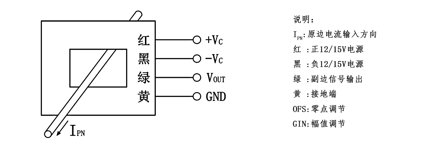 该传感器采用直测式霍尔检测原理工作。原边电流产生的磁通量聚集在磁电路中,并由霍尔器件检测出霍尔电压信号,经过放大器放大,该电压信号精准的反应原边电流。